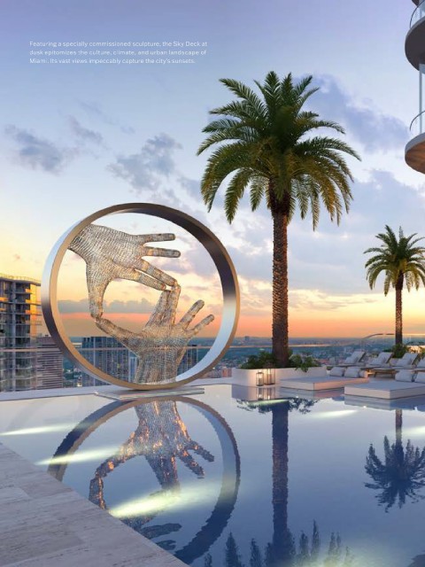 Featuring a specially commissioned sculpture, the Sky Deck at dusk epitomizes the culture, climate, and urban landscape of Miami. Its vast views impeccably capture the city’s sunsets.