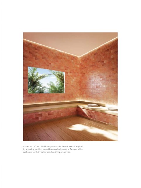Composed of rare pink Himalayan sea salt, the salt room is inspired