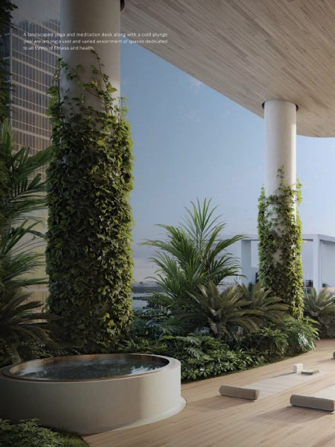 A landscaped yoga and meditation deck along with a cold plunge pool are among a vast and varied assortment of spaces dedicated to all forms of fitness and health.